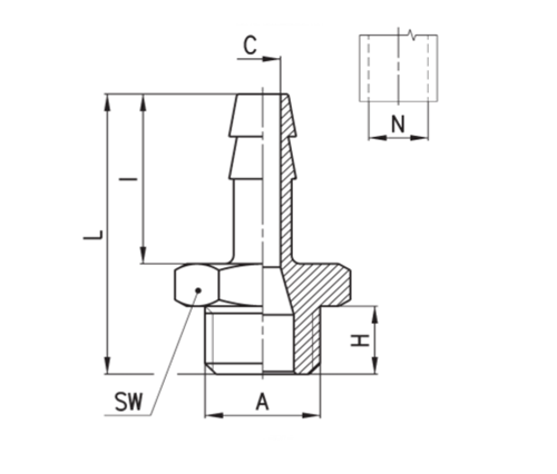 1/2 থ্রেড বিএসপি অ্যাডাপ্টার হোস লেজ টিউব 2601